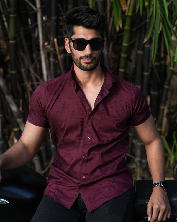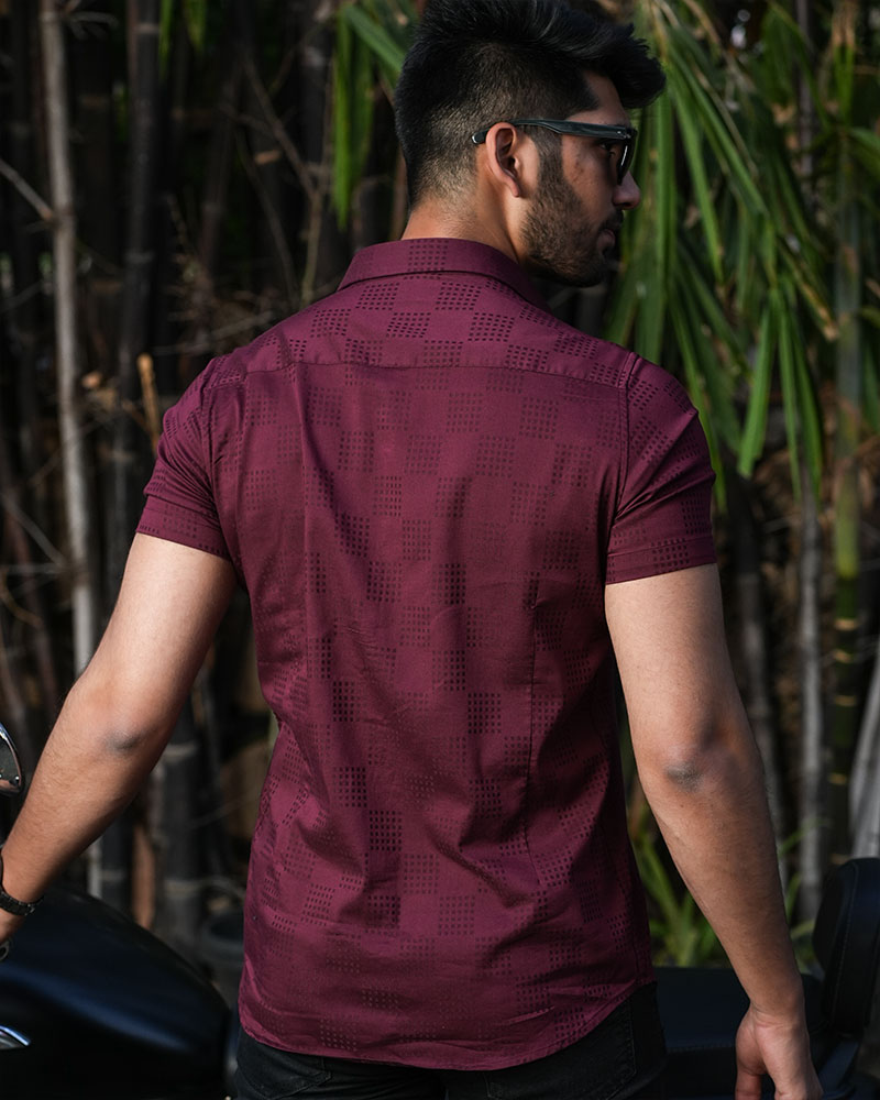 Indulge in understated luxury with our Self-Textured Wine Shirt! Crafted with meticulous detail, this shirt features a subtle texture that adds depth to its rich wine hue.