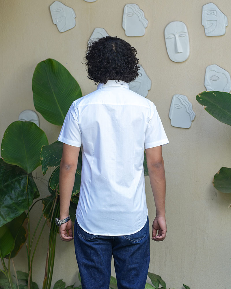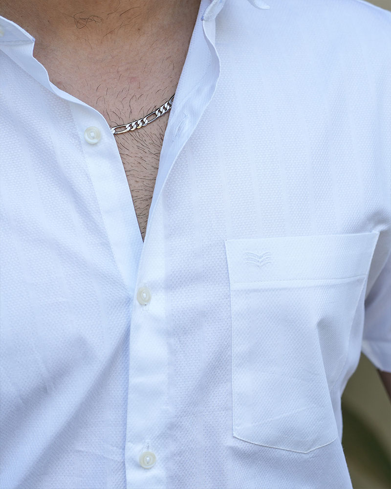 The white textured shirt is a versatile piece that elevates your everyday wardrobe with style and comfort..